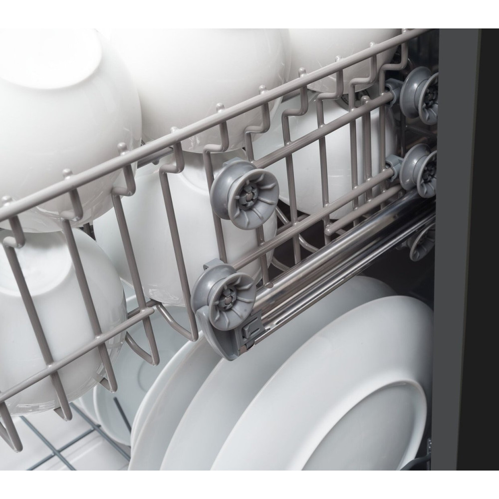 загрузка на 14 комплектов посуды, электронное управление, 7 программ, черный цвет, сушка: стандартная (конденсация)/с открыванием дверцы, индикация на полу: нет