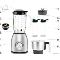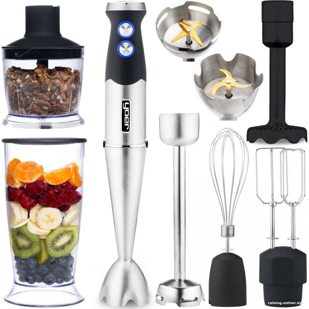 • Комплектация Двигатель блендера Миксер с универсальным лезвием Мешалка с лезвиями из 6 частей. Смеситель для пюре Смеситель Миксер-мешалка Оригинальная упаковка Резиновая крышка Розетка Венчик Венчик-редуктор Крышка измельчителя Лезвие измельчителя Чаша измельчителя