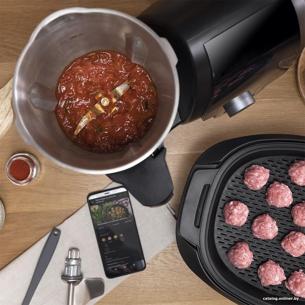 • Полная комплектацияКухонный робот Чаша из нержавеющей стали Ножи из нержавеющей стали Ложка МамбоМикс Корзина для варки Насадка-бабочка для смешивания и взбивания Пароварка на двух уровнях Шпатель Кулинарная книга Руководство по приложению Инструкция по эксплуатации