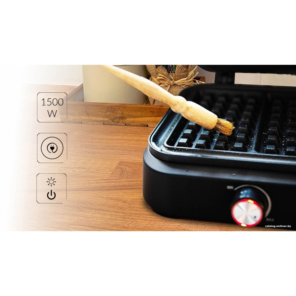 вафельница, 1500 Вт, вид выпечки: венские (бельгийские) вафли, черный