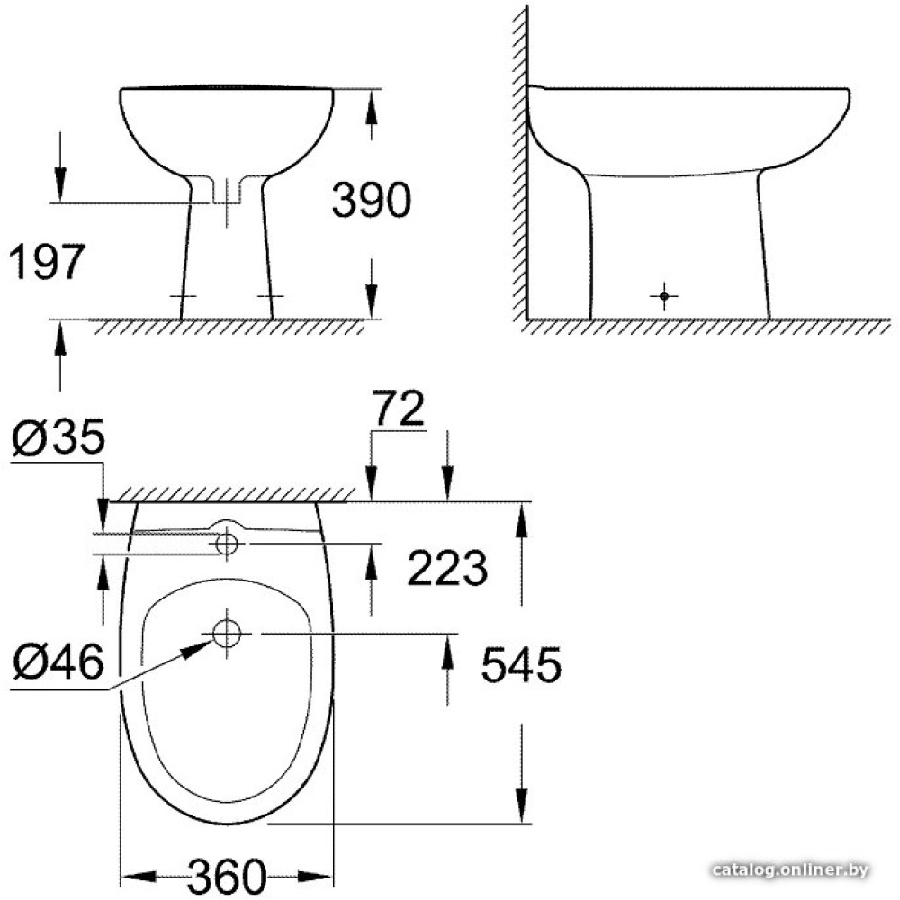 напольный монтаж, овальная чаша, с отверстием под смеситель, с переливом, без крышки, 36x54.5x39 см, белый цвет