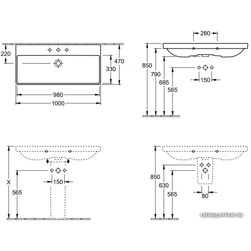 100x47 см, с одной чашей, настенный, крепление на стену/на пьедестал/на полупьедестал/на мебельный шкаф