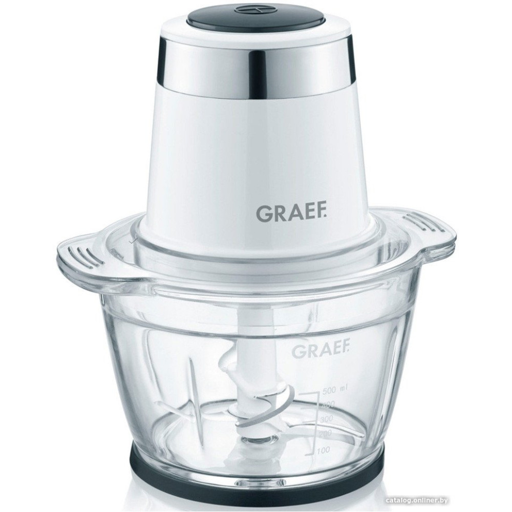 чоппер, питание от сети, 500 Вт, регулировка скорости, чаша 1 л, материал чаши: стекло, материал корпуса: пластик, белый