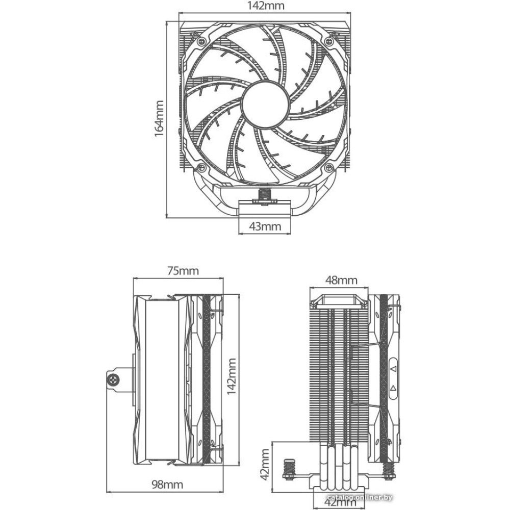 высота 164 мм, вентилятор 140 мм, 1200 об/мин, PWM, подшипник гидродинамический (FDB), макс. шум 29.2 дБ