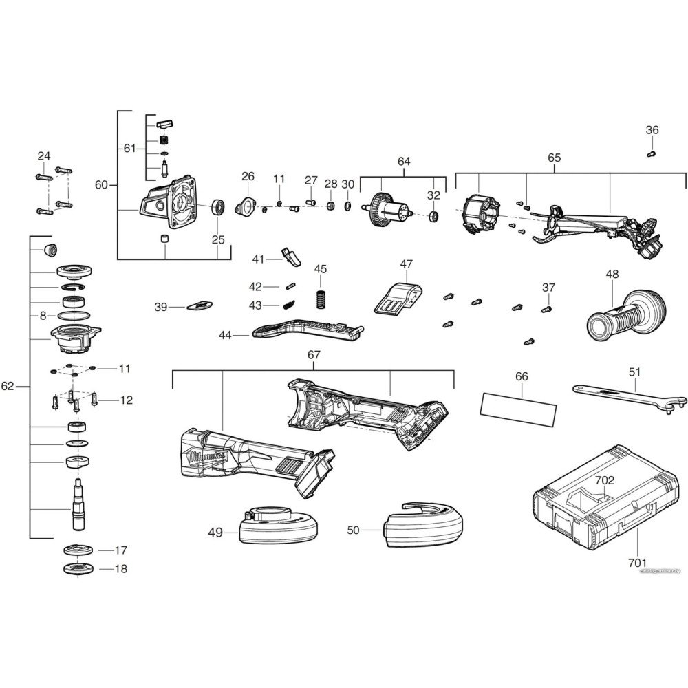 - Комплект поставки Шлифмашина Быстрозажимной защитный кожух Антивибрационная боковая рукоятка Фланец Фланцевая гайка Ключ Противопылевой экран Динакейс