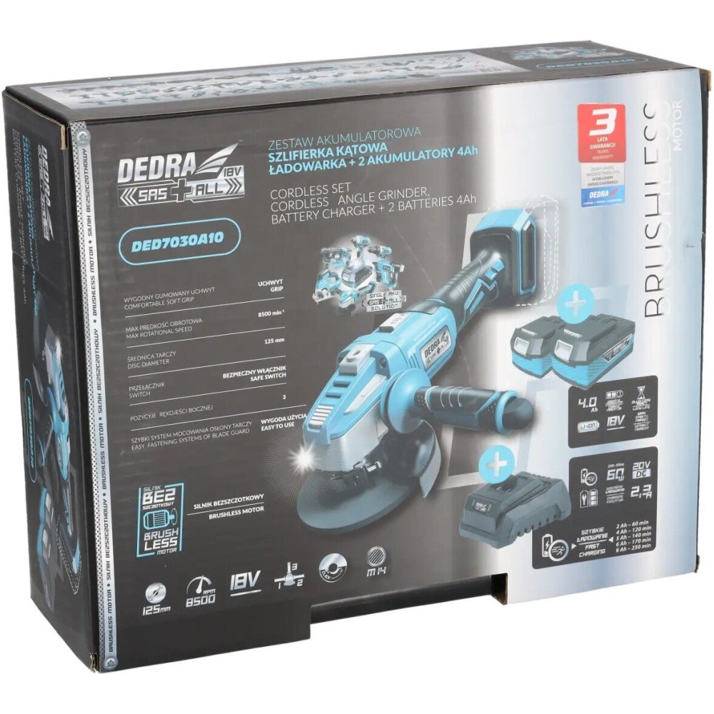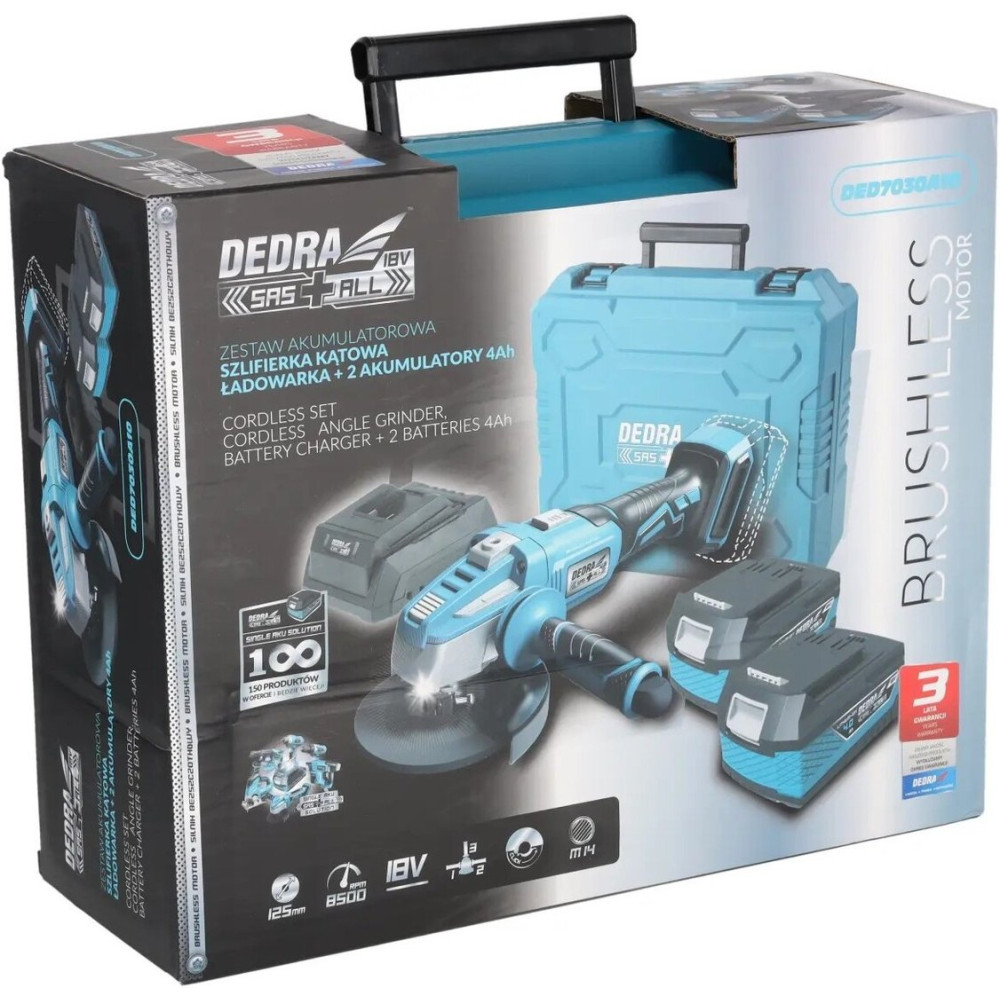 Угловая шлифмашина Dedra DED7030A10 (с 2-мя АКБ, кейс)