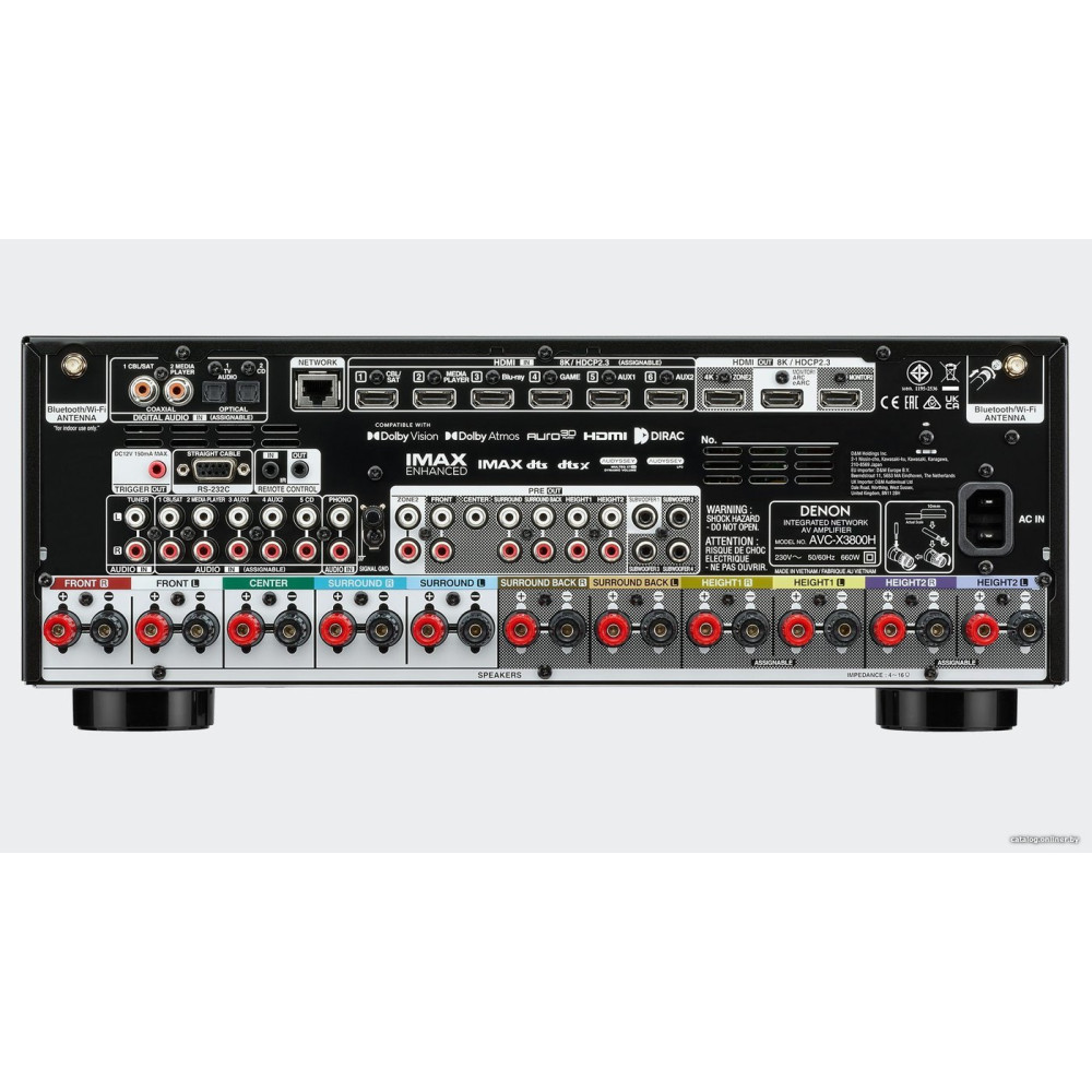 - Встроенные декодерыAudyssey LFC, Auro-3D, Dolby Atmos, Dolby Digital 5.1, Dolby Digital, Dolby Digital Plus, Dolby Surround, Dolby True HD, Dolby Virtual Height, DTS, DTS Digital Surround, DTS X, DTS-Express, DTS-ES, DTS-ES Discrete, DTS-ES Matrix, DTS Neural X, DTS-HD, DTS-HD Master Audio, DTS-HD High Resolution Audio, DTS Virtual X, DTS 96/24, IMAX Enhanced