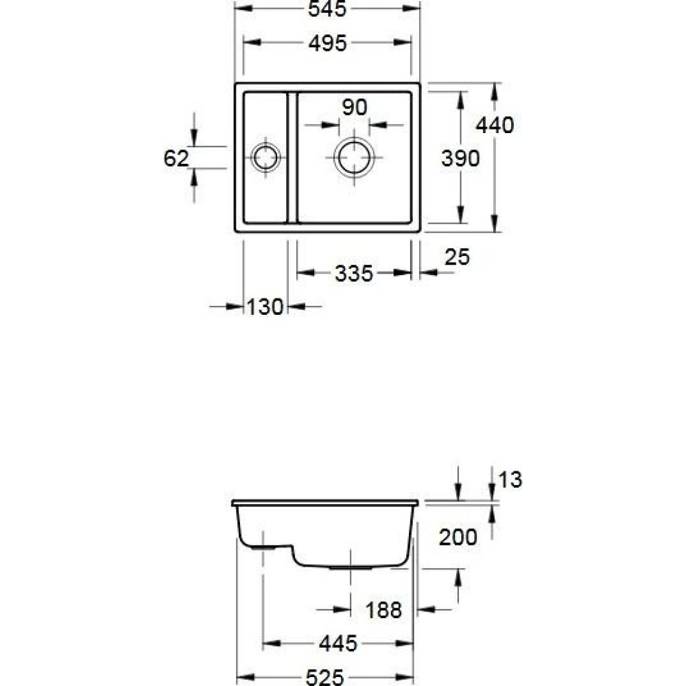 • Длина мойки 54.5 см