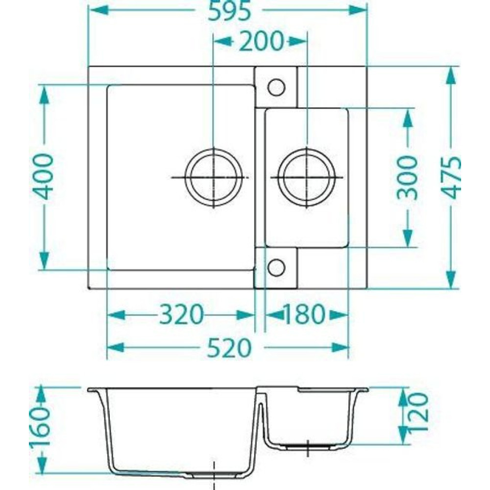 - Длина мойки 59.5 см