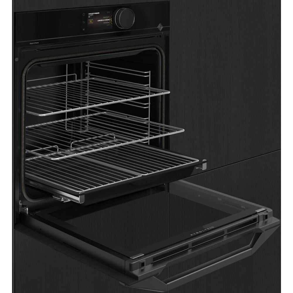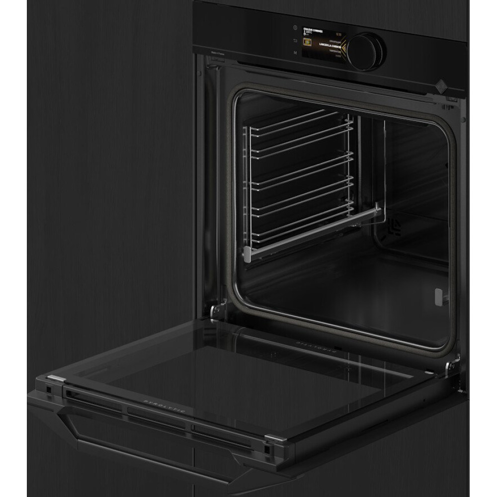 электрический с конвекцией, объем 73 л, 12 режимов, автопрограммы, очистка пиролитическая, 4 стекла в дверце, направляющие проволочные + телескопические (1 уровень)