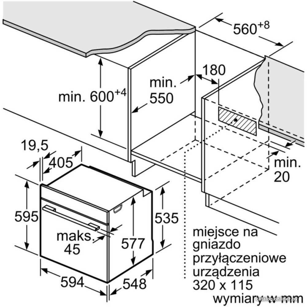 - Глубина55 см