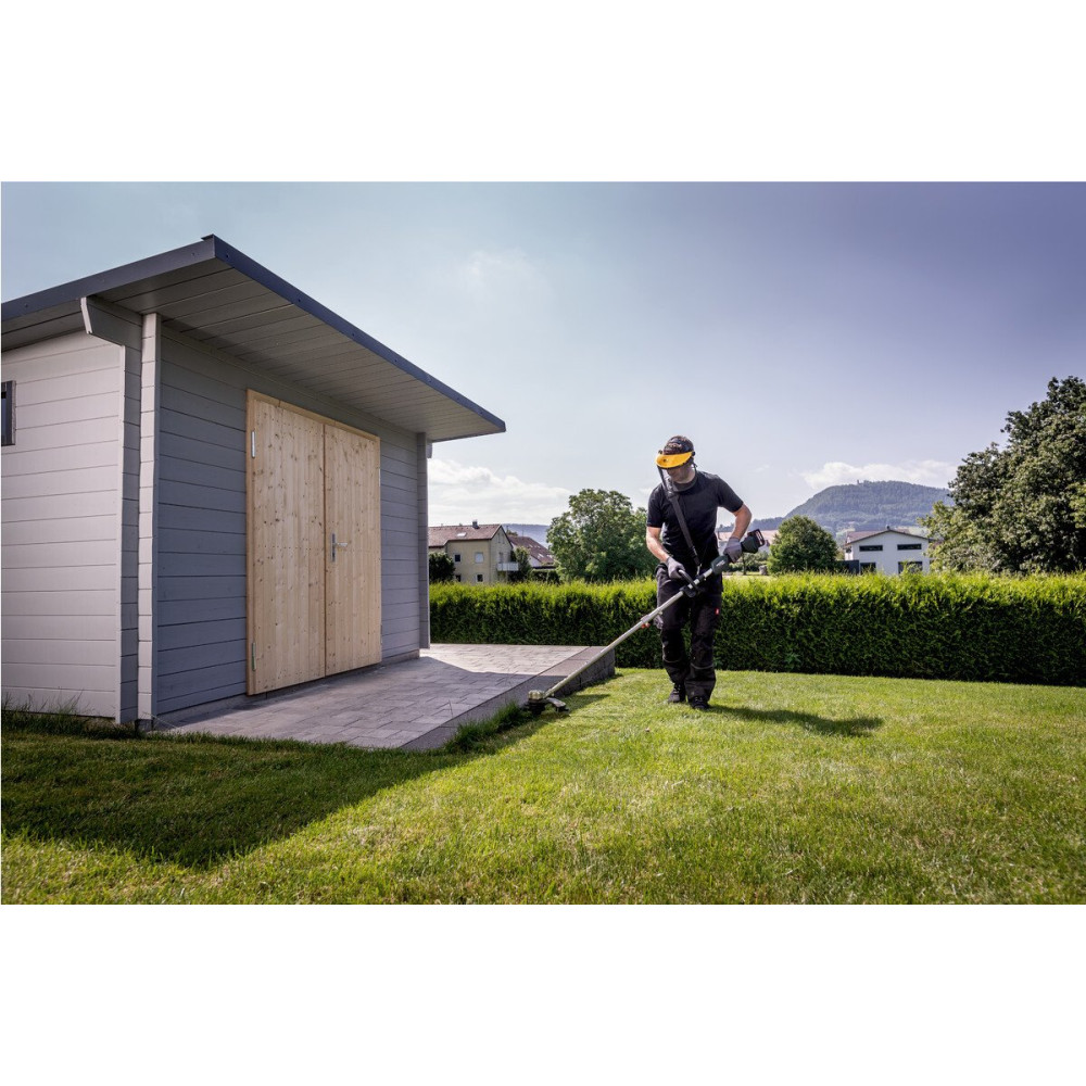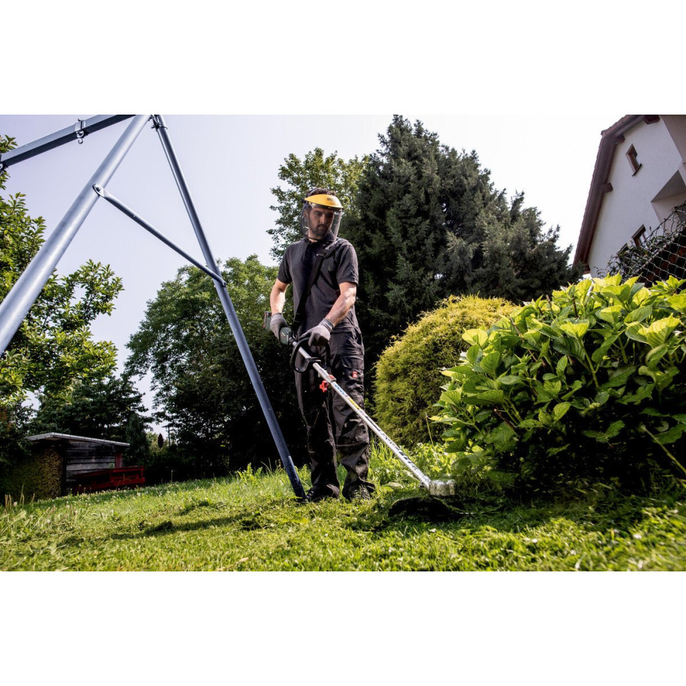 - Комплектация- Ручка-скоба - Наплечный ремень - Защитный кожух - Катушка с двумя режущими нитями (нить Ø 2 мм, 4 м) - Торцовый шестигранный ключ - Крестовая отвертка