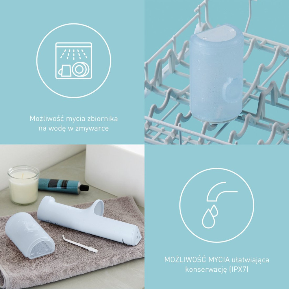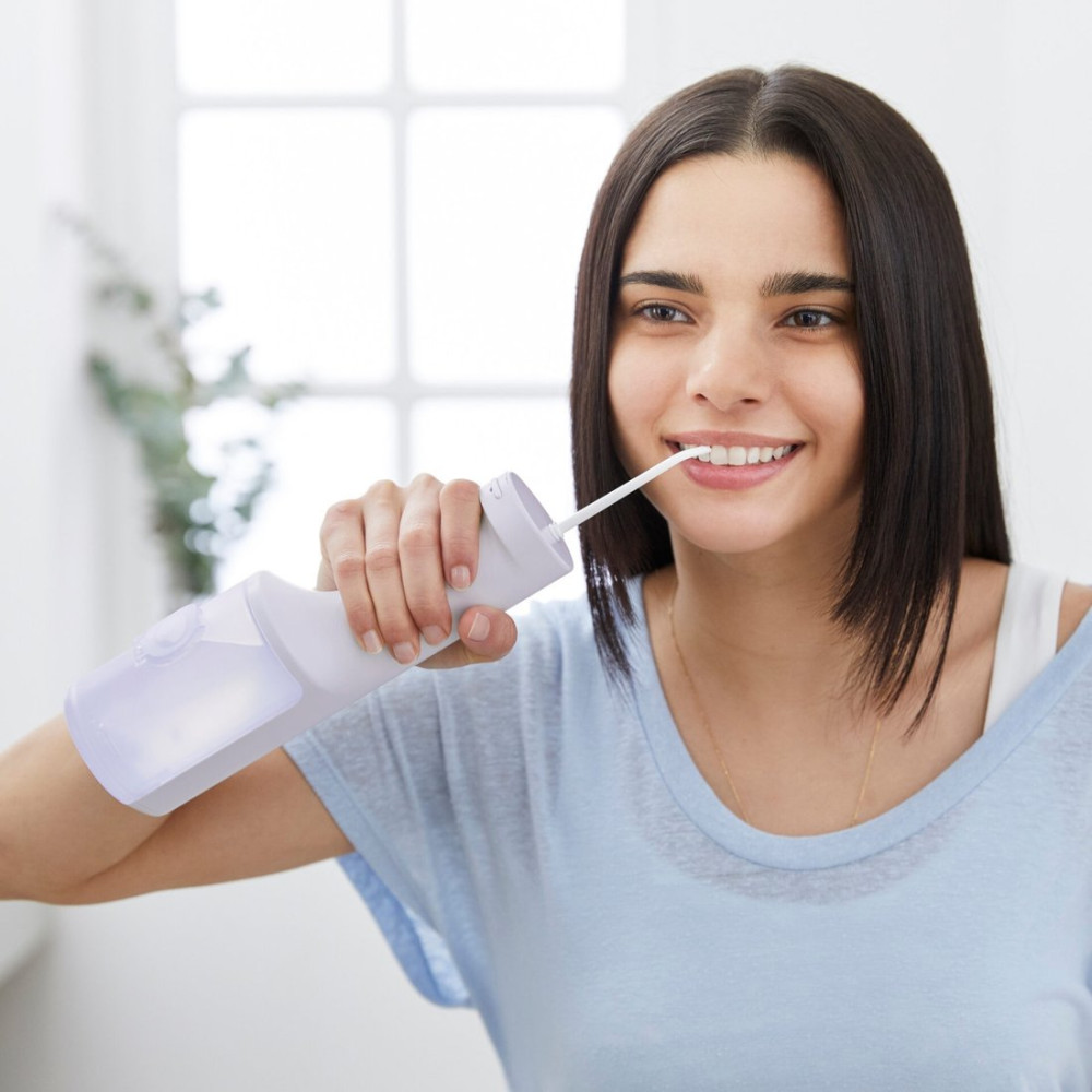 ирригатор, питание от аккумулятора, регулировка струи, в комплекте: подставка-зарядная база, количество насадок: 4