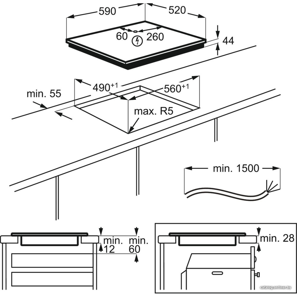 индукционная на 4 конфорки, cтеклокерамика, мощность: 7350 Вт, независимая установка, размеры (ШхГ): 59x52 см