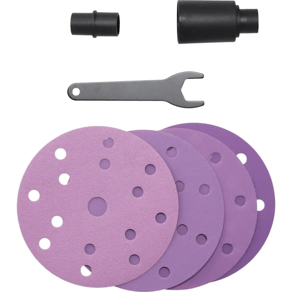 - Комплект поставки - Эксцентриковая шлифовальная машина; - Адаптеры (2 шт.); - Внутренний гаечный ключ (1 шт.); - Наждачная бумага с керамической зернистостью (4 шт.); - Шланг (1 шт.).