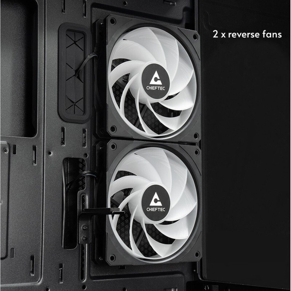 - Расположение вентиляторовсверху:3x120 мм или 2x140 мм сзади:1x120 мм на кожухе БП:3x120 мм на M/B стороне:2x120 мм установлены на M/B стороне:2x120 мм сзади:1x120 мм