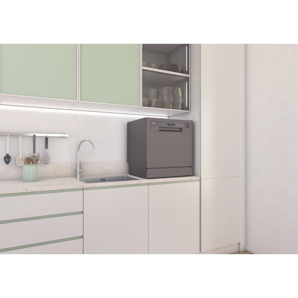 загрузка на 8 комплектов посуды, сенсорное управление, 8 программ, антрацит цвет, сушка: стандартная (конденсация), индикация на полу: нет