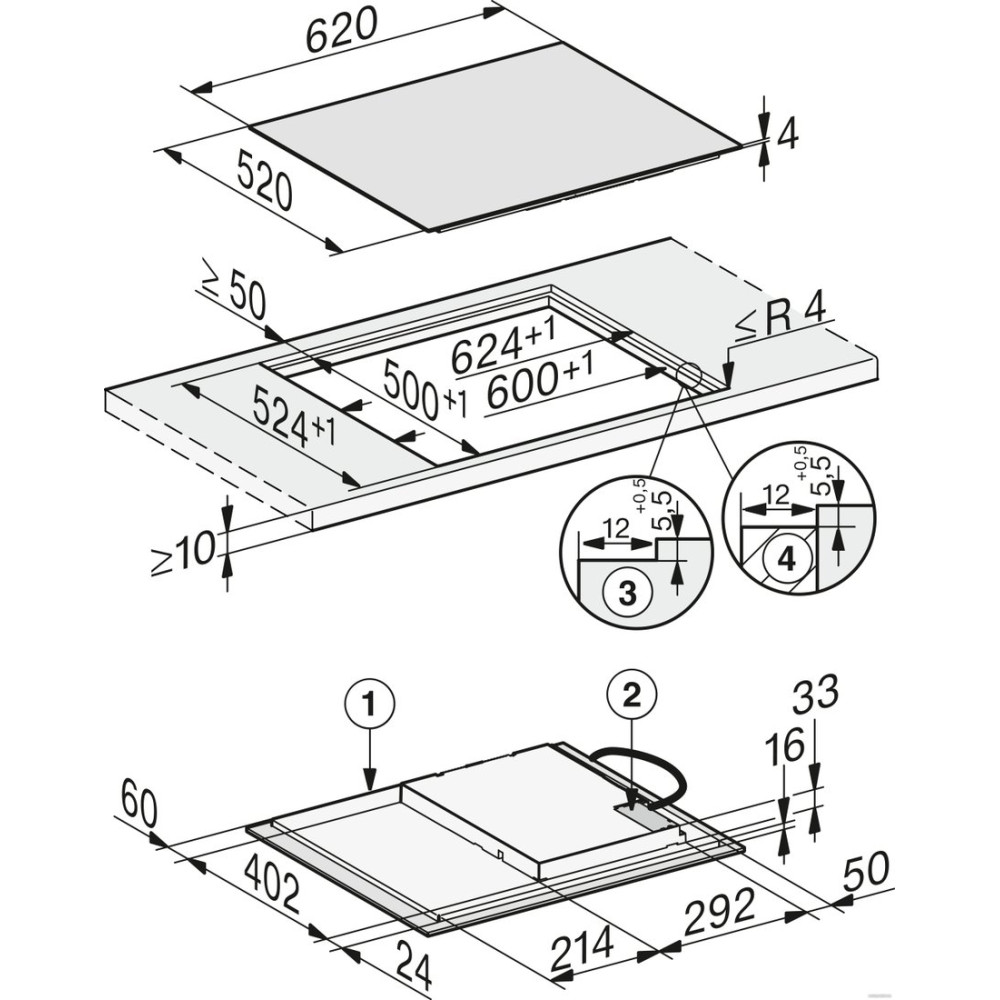 индукционная на 4 конфорки, cтеклокерамика, мощность: 7300 Вт, автоматика закипания, независимая установка, размеры (ШхГ): 62x52 см