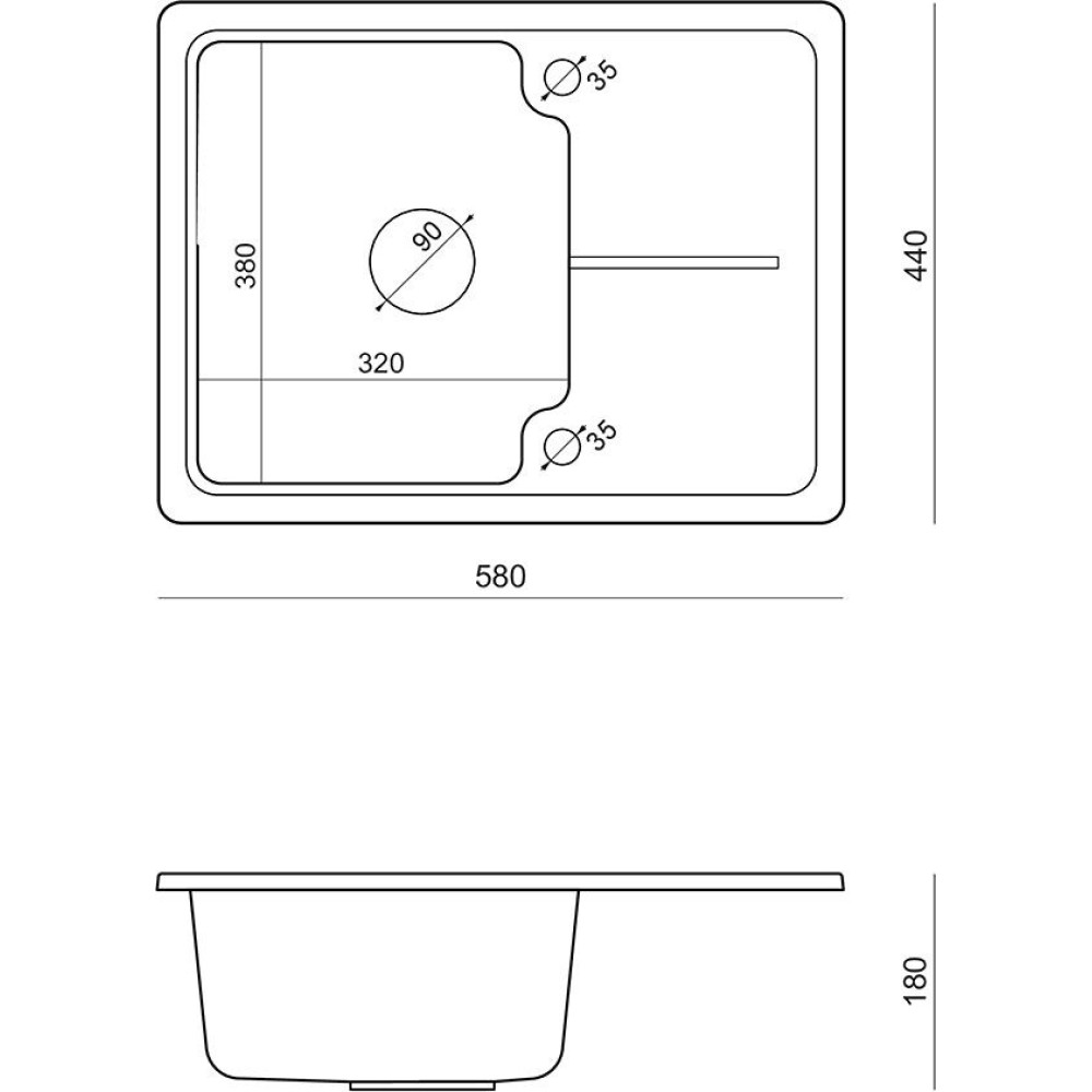 - Длина мойки 58 см