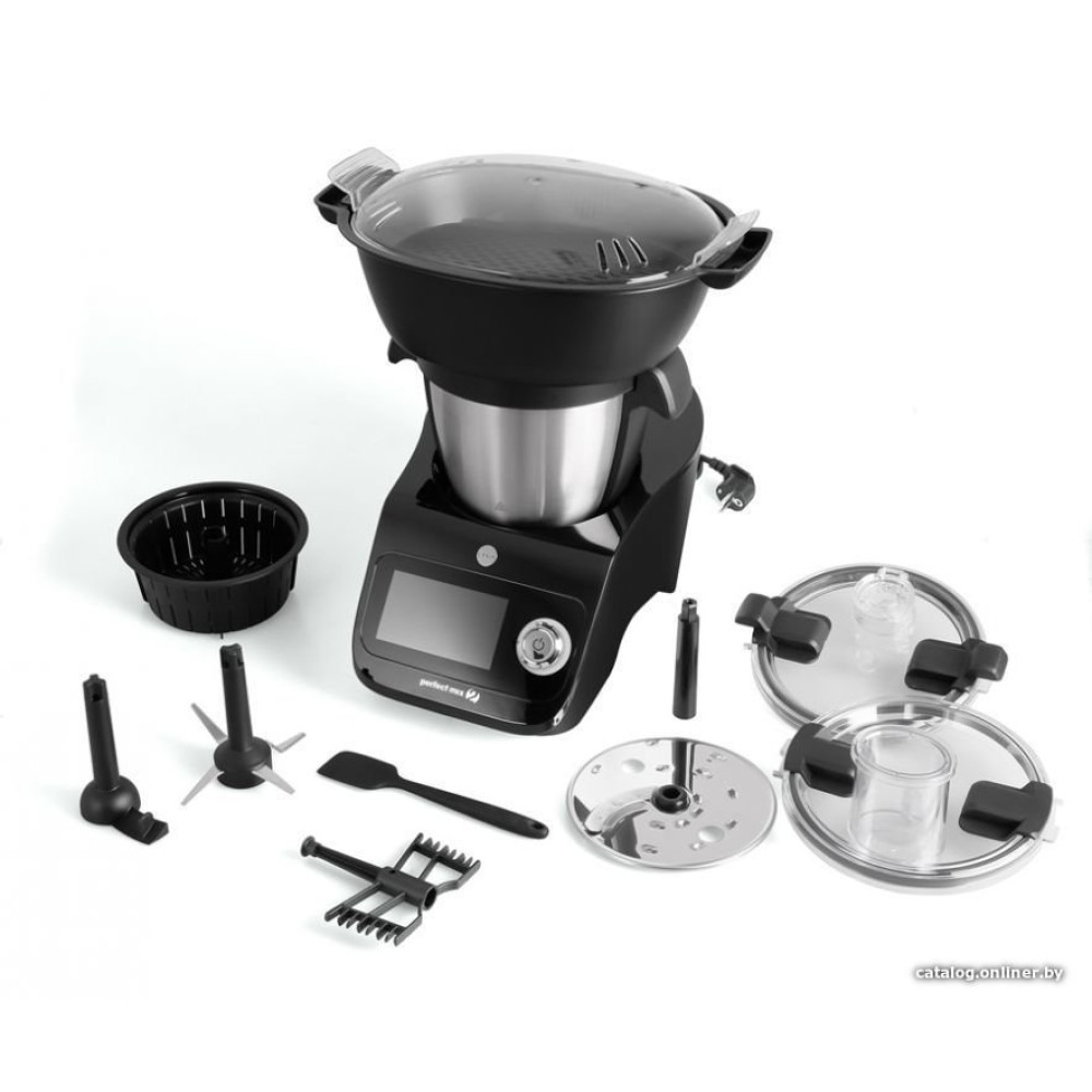 - Полная комплектацияЧаша для смешивания из нержавеющей стали емкостью 3,5 л (рабочий объем 2 л), крышка с отверстием, мерный стакан, нож для нарезки, венчик, насадка для смешивания, лопатка, корзина для приготовления на пару и воде, набор для приготовления на пару (контейнер + противень) + крышка) два диска: для шинковки на стружку и ломтики, и для измельчения овощей и фруктов