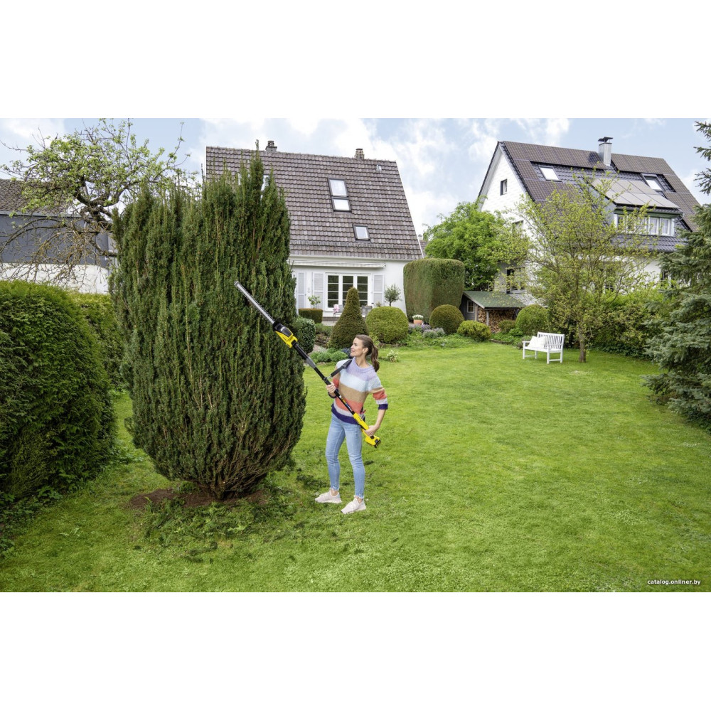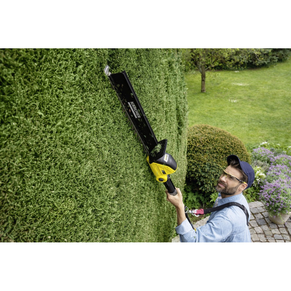 - Комплектация- Защитная планка; - Защитный элемент на конце ножа; - Приспособление для подвешивания; - Насадка для удаления срезанных листьев; - Удлинитель; - Плечевой ремень.