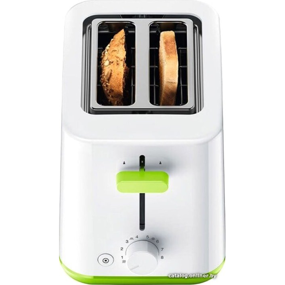 900 Вт, количество тостов: 2, корпус: пластик, решетка для подогрева булочек, 8 степеней обжаривания, цвет белый/зеленый