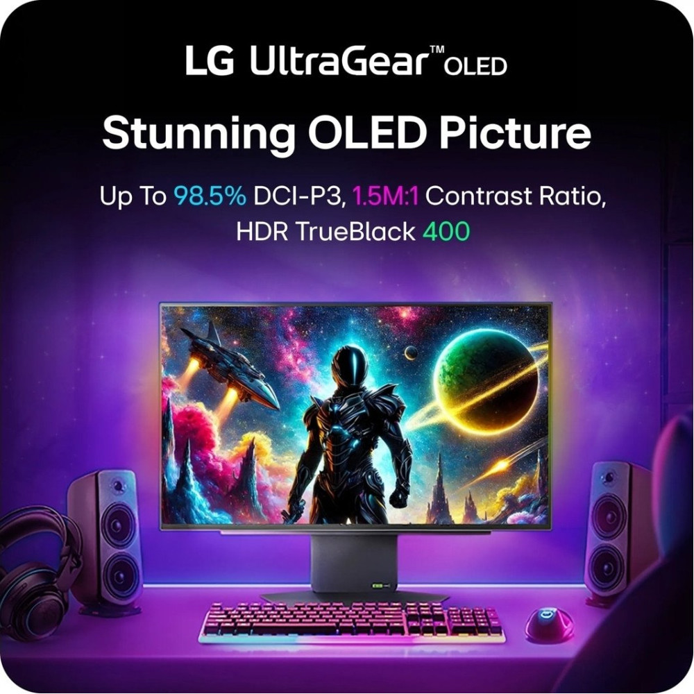 26.5", 2560x1440, 16:9, OLED, 480 Гц, глубина 10 бит, яркость 275 нит, HDR10, HDMI+DisplayPort, регулировка высоты, портретный режим