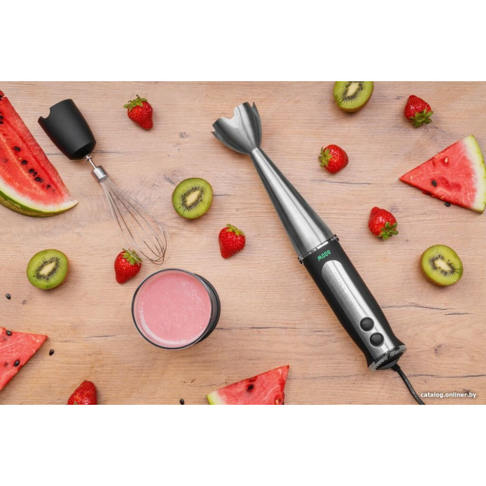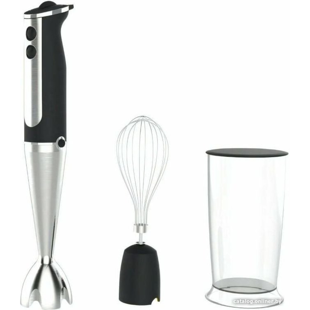 - Комплектация Погружная насадка, насадка-венчик, стакандля смешивания с мерной шкалой 600 мл, крышка