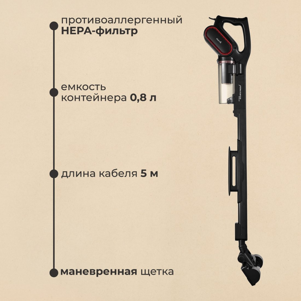 вертикальный, сеть, мощность всасывания: 210 Вт, потребление: 650 Вт, без регулировки мощности, турбощетка, шум 85 дБ