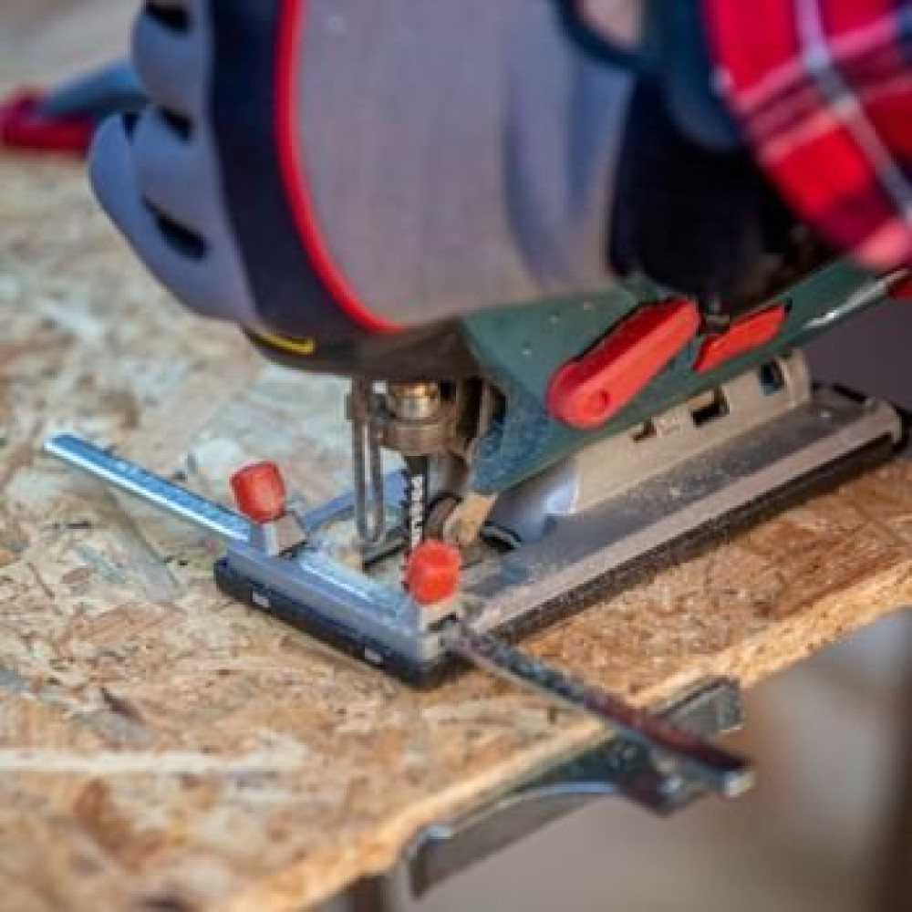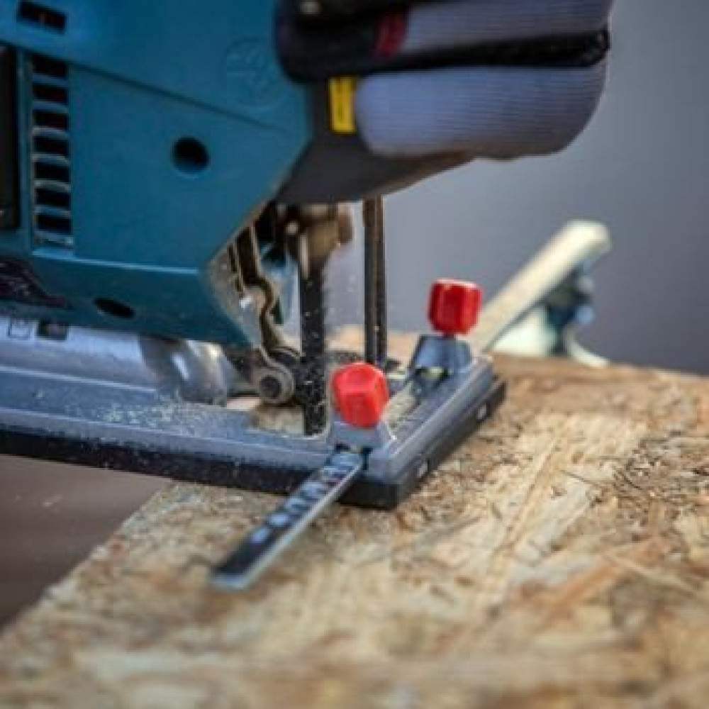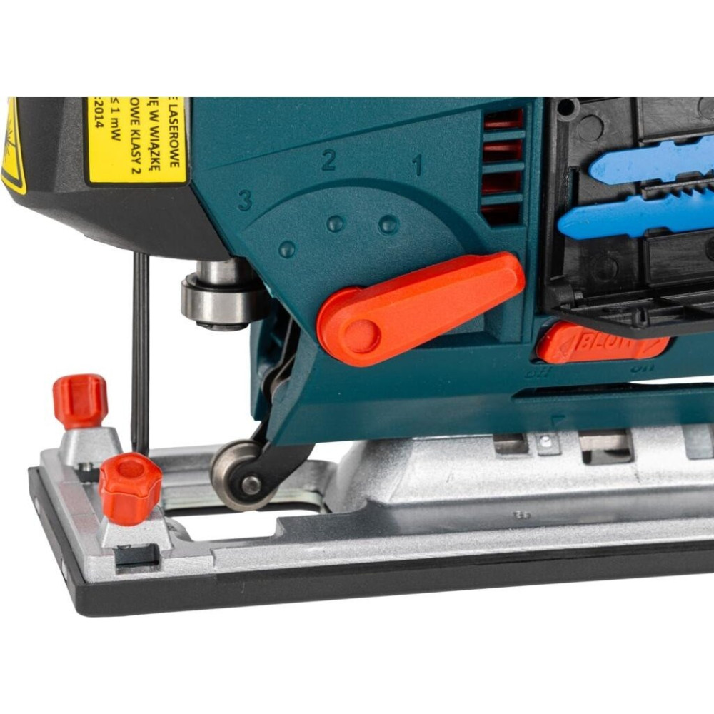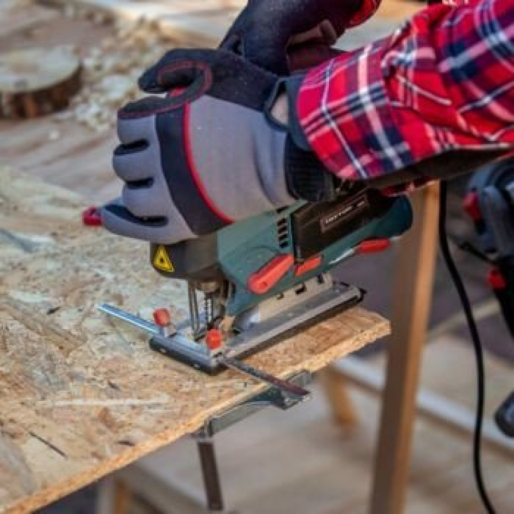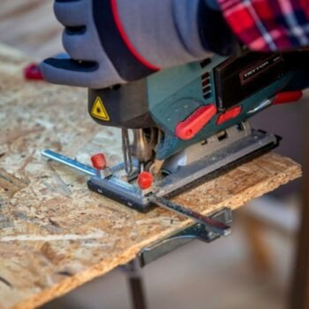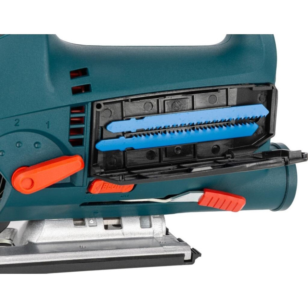 рукоятка-скоба, питание: сеть, 800 Вт, глубина пропила: 110 мм (дерево), 10 мм (сталь), 800–3100 ходов/мин