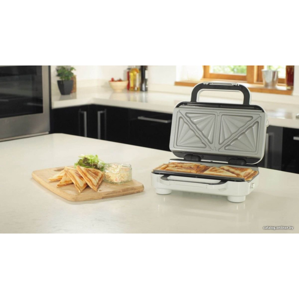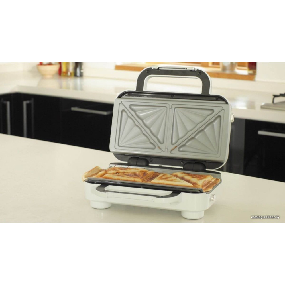сэндвичница, 850 Вт, поверхность: форма для 2 ломтиков хлеба, съемные плитки, белый/серебристый