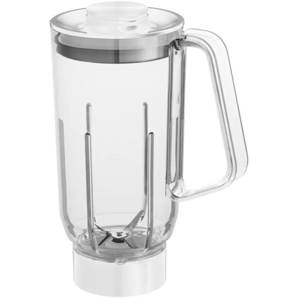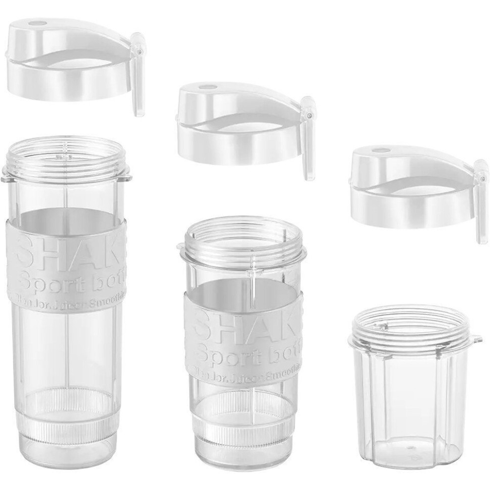 - Комплектация основная база, литровая чаша из тритана с ручкой, дорожная бутылка 570 мл, дорожная бутылка 400 мл, мельничка для специй/кофе, два вида ножей, крышки для бутылок с питьевым клапаном и силиконовым грипом, инструкция