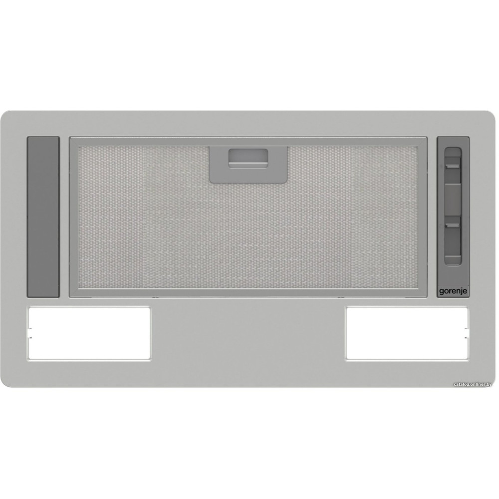 конструкция скрытая, монтаж для встраивания, ширина 53.43 см, управление слайдерное, производительность вытяжки 370 м³/ч, цвет серый