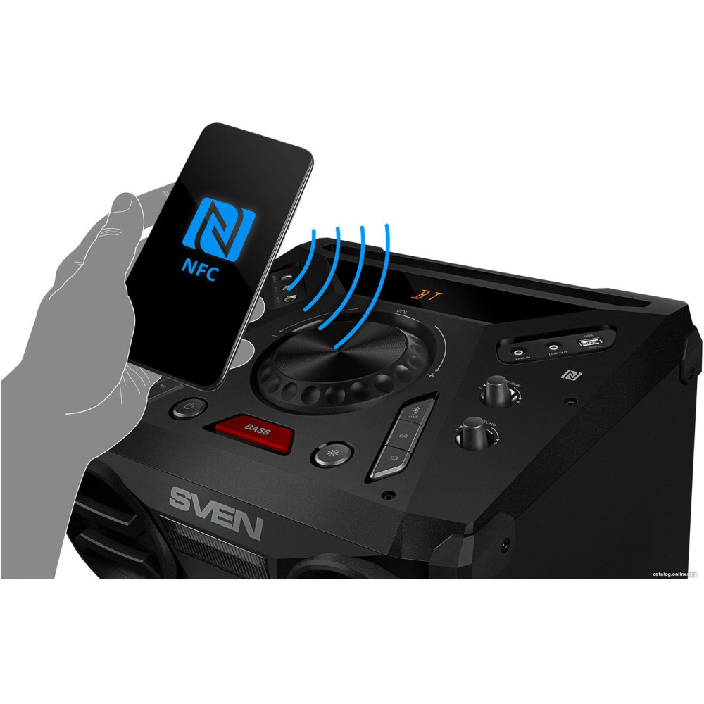 воспроизведение с USB, питание от сети, BT, NFC, AUX