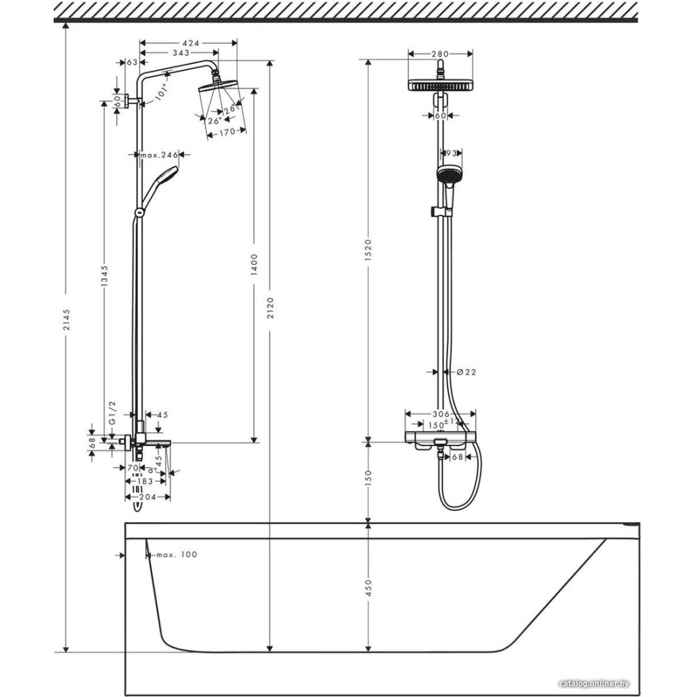 - СерияCroma E Showerpipe 280 1jet (Hansgrohe)