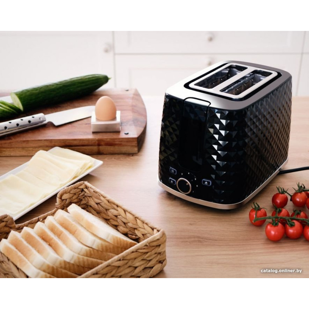 930 Вт, количество тостов: 2, корпус: металл, решетка для подогрева булочек, 7 степеней обжаривания, цвет черный