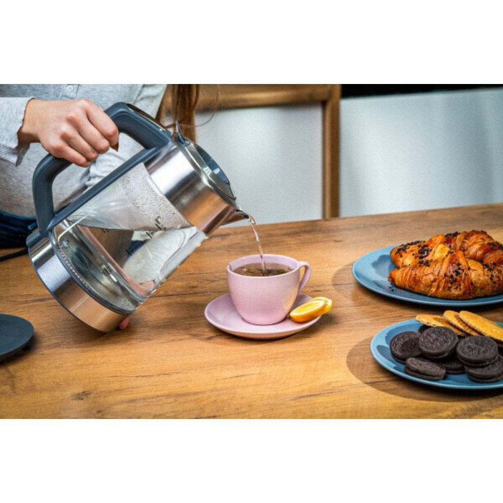 2200 Вт, объем 1.7 л, терморегулятор, подсветка, цвет нержавеющая сталь/прозрачный
