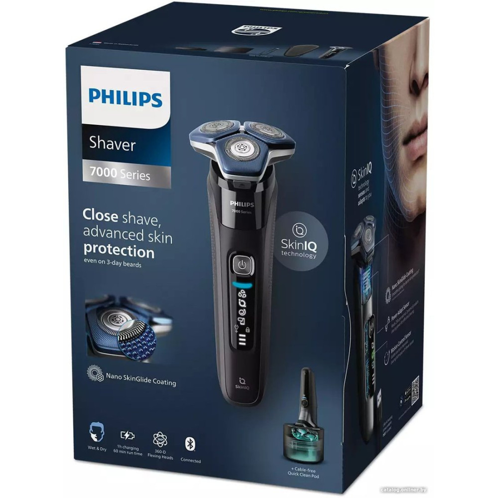 роторная, влажное бритье, сенсор щетины, устройство для автомат. очистки, питание от аккумулятора, 60 минут автономной работы