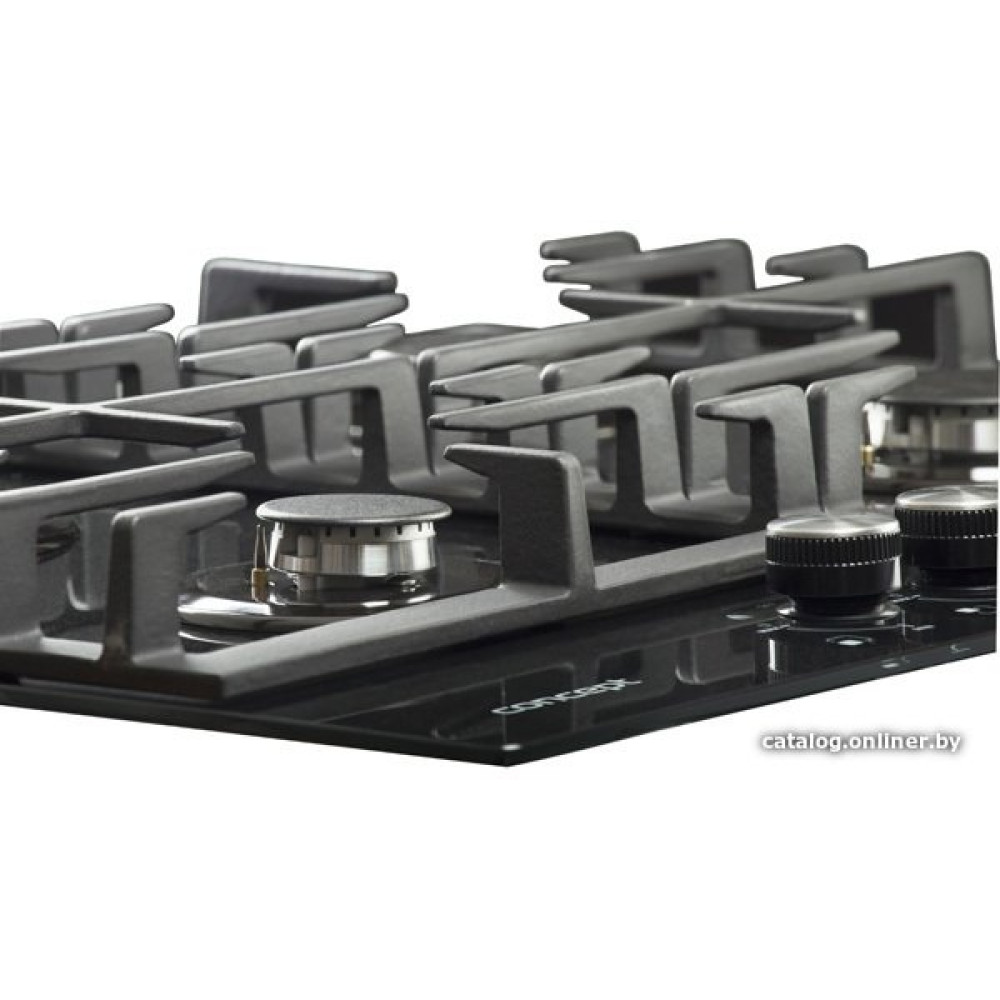 газовая на 4 конфорки, закаленное стекло, мощность: 7500 Вт, автоматический электроподжиг, газ-контроль, решетки: чугун, независимая установка, размеры (ШхГ): 60x51.5 см
