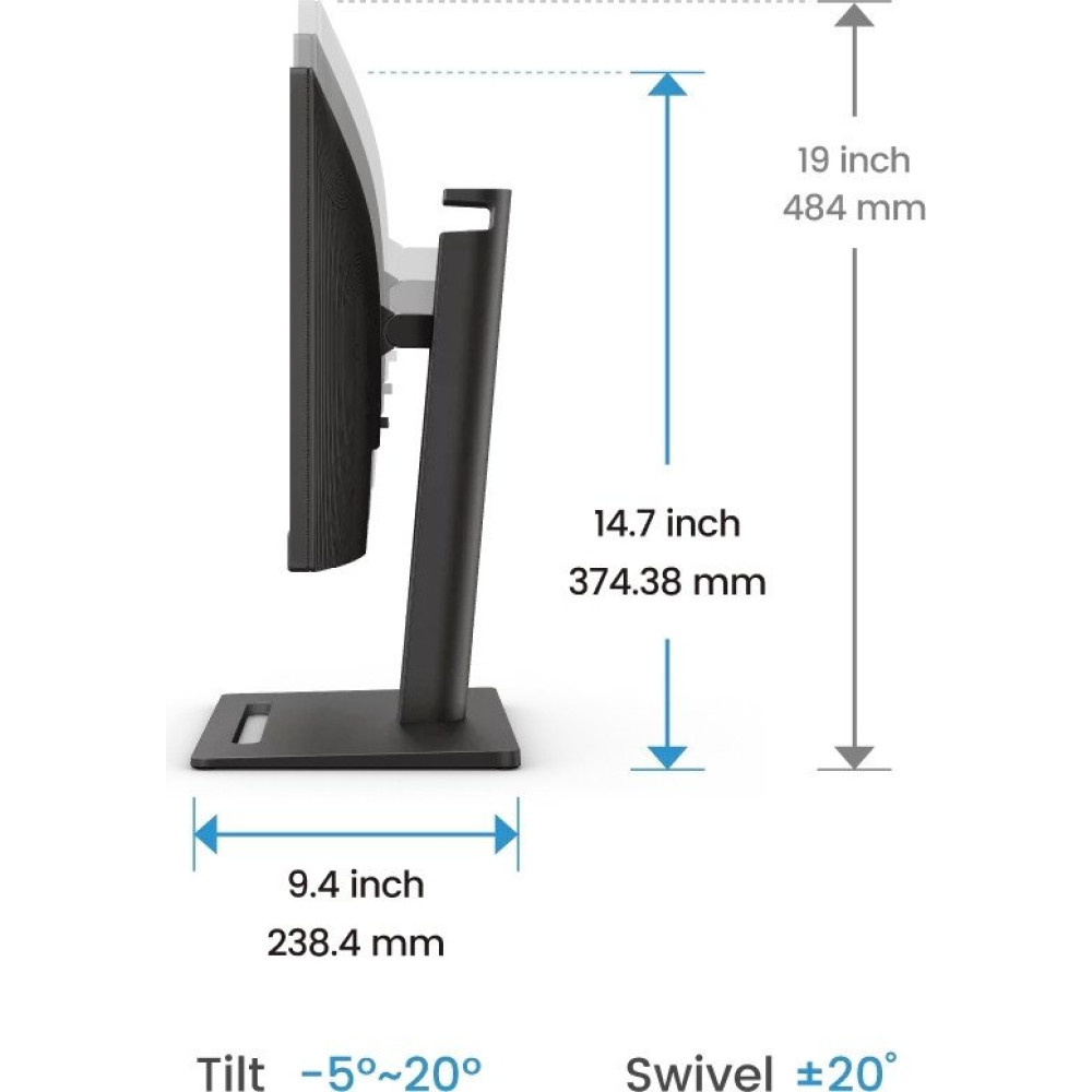 23.8", 1920x1080, 16:9, IPS, 100 Гц, глубина 6 бит + FRC, яркость 250 нит, HDMI+DisplayPort, регулировка высоты, портретный режим