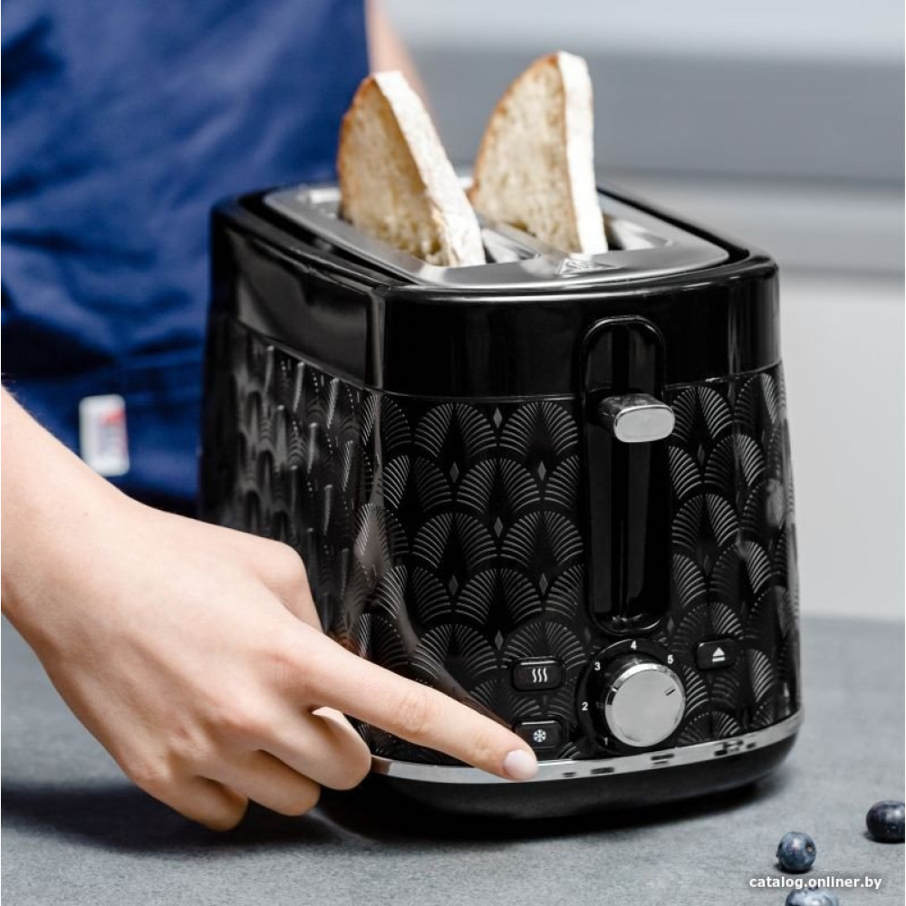 930 Вт, количество тостов: 2, корпус: пластик, 7 степеней обжаривания, цвет черный