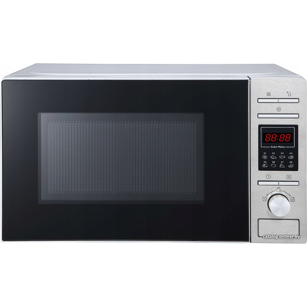 отдельностоящая, микроволны и гриль, объем 20 л, выходная мощность микроволн 700 Вт, управление электронное, автоприготовление, авторазмораживание, цвет нержавеющая сталь/черный