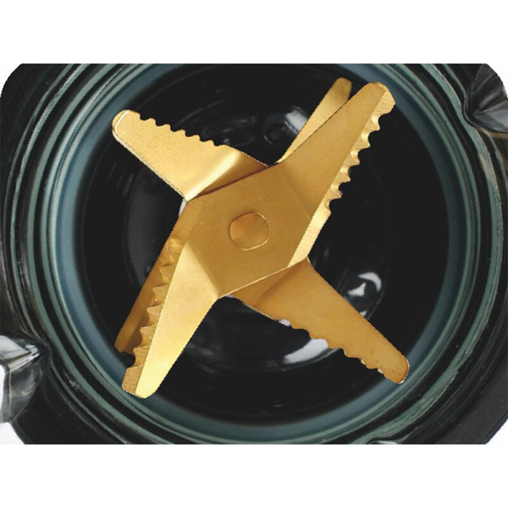 - Комплектация стеклянная чаша 1.5 л; основной блок с мотором; нож с титановым покрытием; отдельный нож для колки льда; инструкция