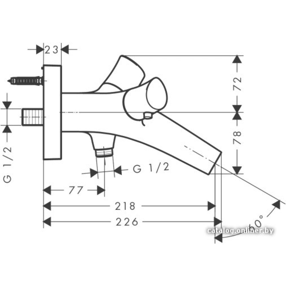 - Длина (вылет) излива218 мм