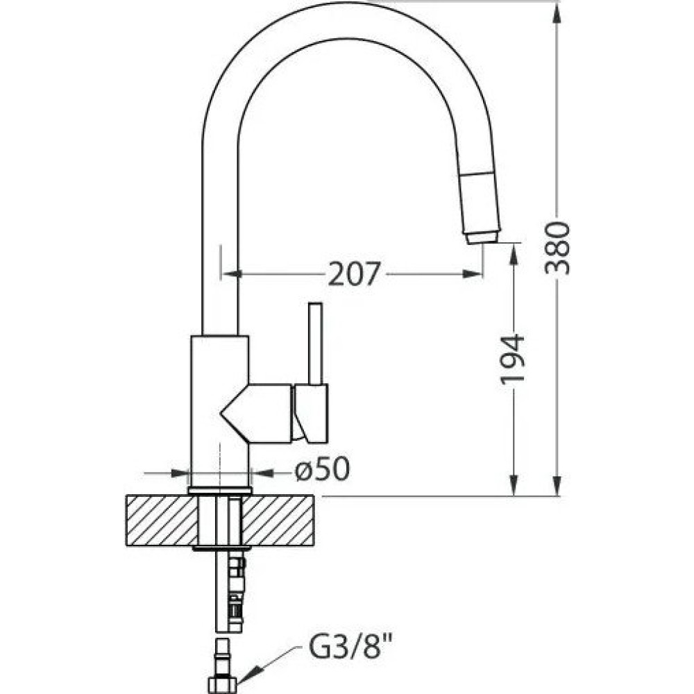 - Длина (вылет) излива207 мм