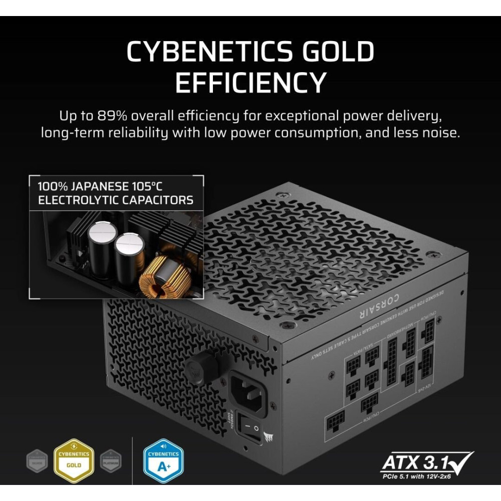 ATX 850 Вт, золотой сертификат 80 Plus, модульный, 1x 12В 70.8А, 1x PCIe Gen5, вентилятор 1x140 мм, с остановкой вентилятора (Fan-Stop)