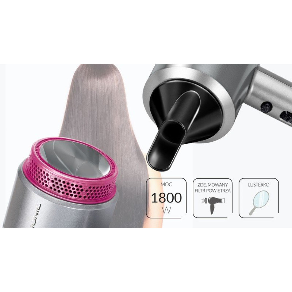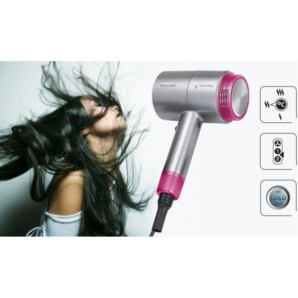 1800 Вт, ионизация, независимая регулировка температуры, шнур 1.8 м, серебристый/розовый