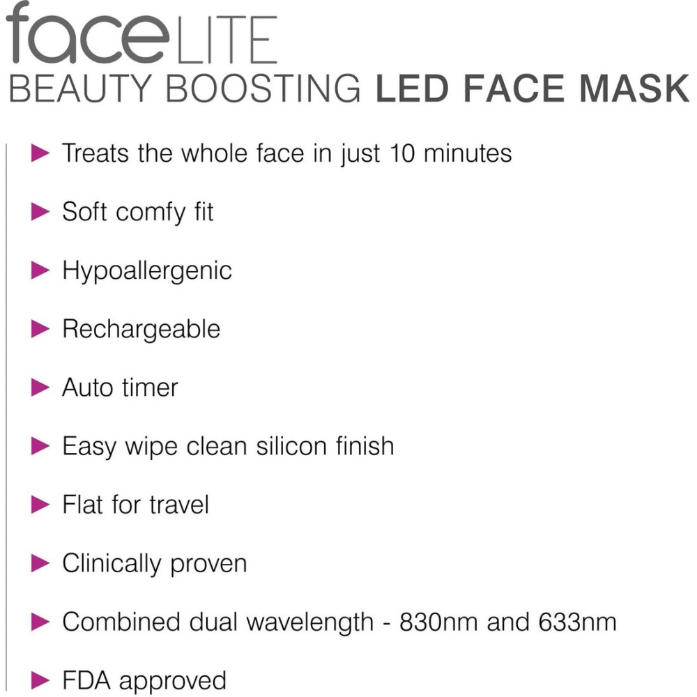 - КомплектацияМаска FaceLITE Контроллер USB-кабель для зарядки Головной ремешок