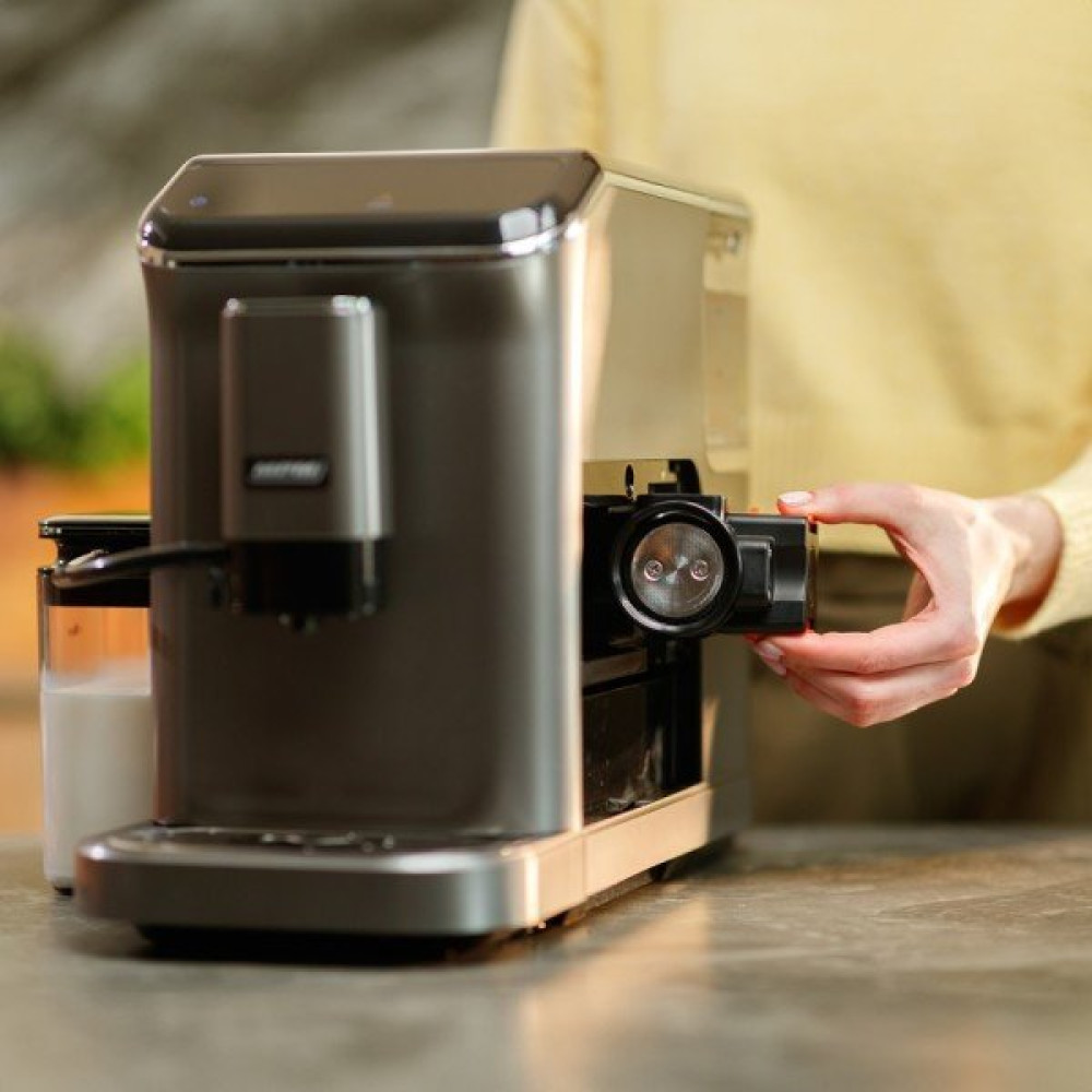 1350 Вт, корпус металл/пластик, капучинатор автоматический, используемый кофе: зерновой, цвет нержавеющая сталь