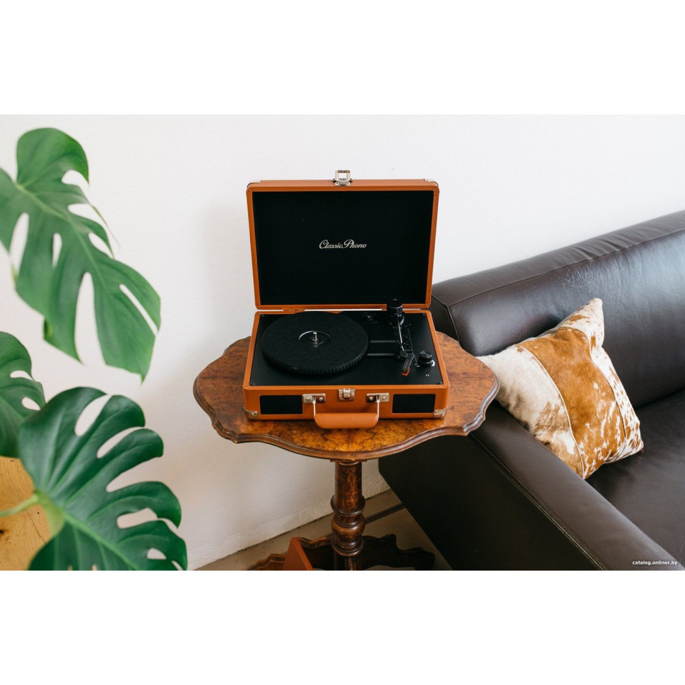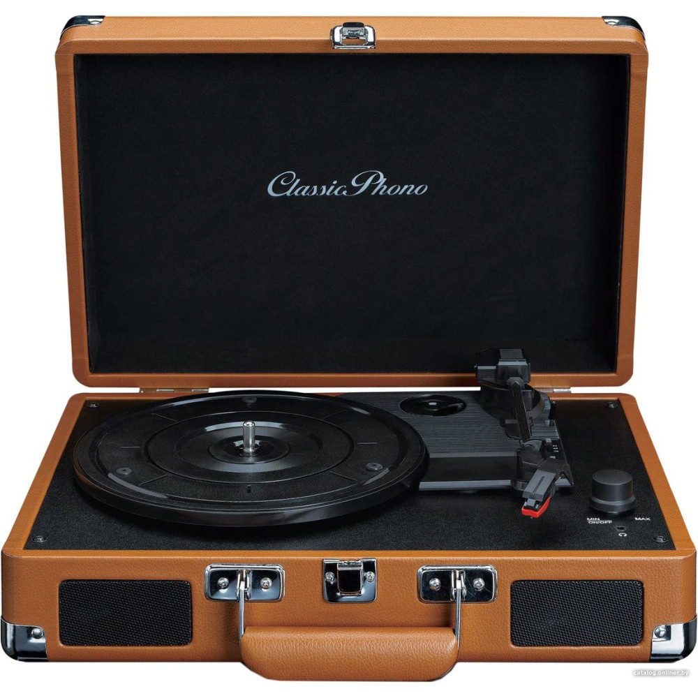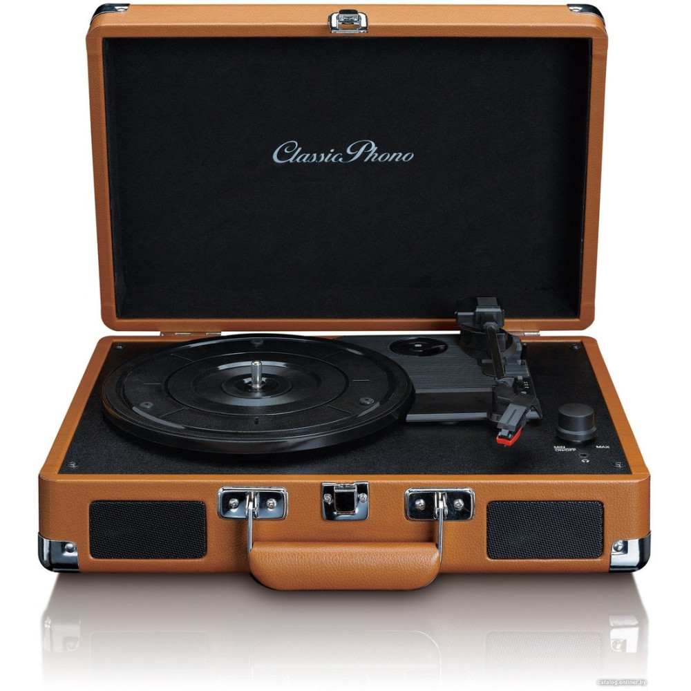 ременной привод, 33 1/3, 45 и 78 об/мин, электронное переключение скоростей, встроенный фонокорректор, тонарм поворотный (прямой), картридж с подвижным магнитом (MM), цвет коричневый/черный